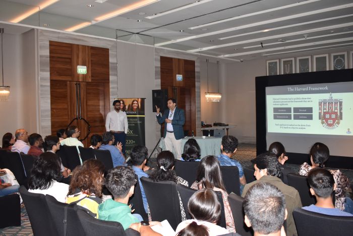The workshop offered families a clear understanding of the highly selective admissions process at institutions such as Harvard, Stanford, Oxford, and Yale. Students were guided through the essential qualities that define standout applicants, with a strong emphasis on intellectual curiosity, research-driven exploration, and long-term extracurricular commitment. The session also stressed the importance of authenticity in essays and personal storytelling, while highlighting the common missteps Indian applicants often make.