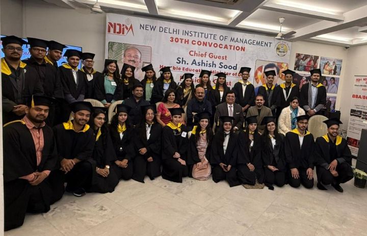 The New Delhi Institute of Management (NDIM), an AICTE approved B-school affiliated to GGSIPU for BBA & BCA in Delhi, on December 13 hosted its 30th Convocation Ceremony for the BBA Batch of 2021–24 at its Tughlakabad Campus. The ceremony marked a significant academic milestone with 30 university gold medalists and distinction holders being honoured for excellence and 300 students receiving their GGSIP university BBA degrees.