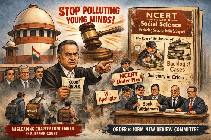 A Bench led by Chief Justice Surya Kant took suo motu cognizance of the issue and criticised the chapter for presenting the judiciary negatively to school students. Following the court’s intervention, the Ministry of Education, Government of India directed NCERT to halt the distribution of the book—both physical and digital copies. NCERT subsequently admitted that the chapter contained “inappropriate textual material” and announced that it would be rewritten.